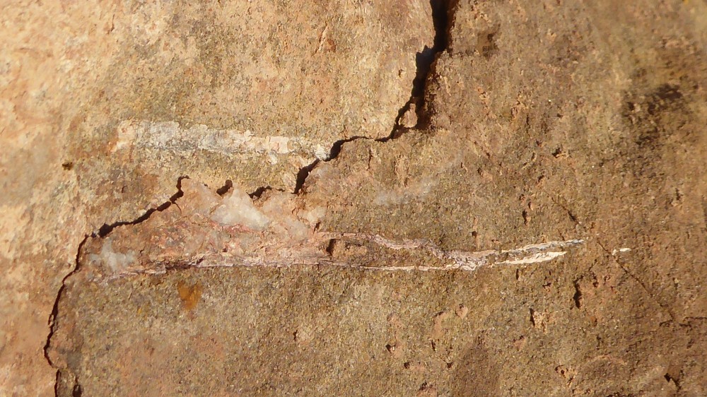 Vous remarquez également que le dit dépôt est parcouru de très nombreuses fissures, aujourd'hui calcifiées ; cela est en rapport avec l'histoire tectonique compliquée de toute la zone.
