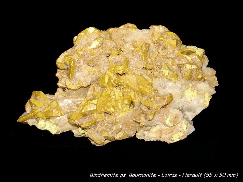 Bindheimite pseudomorphose bournonite de Loiras, Le Bosc (Hérault)
