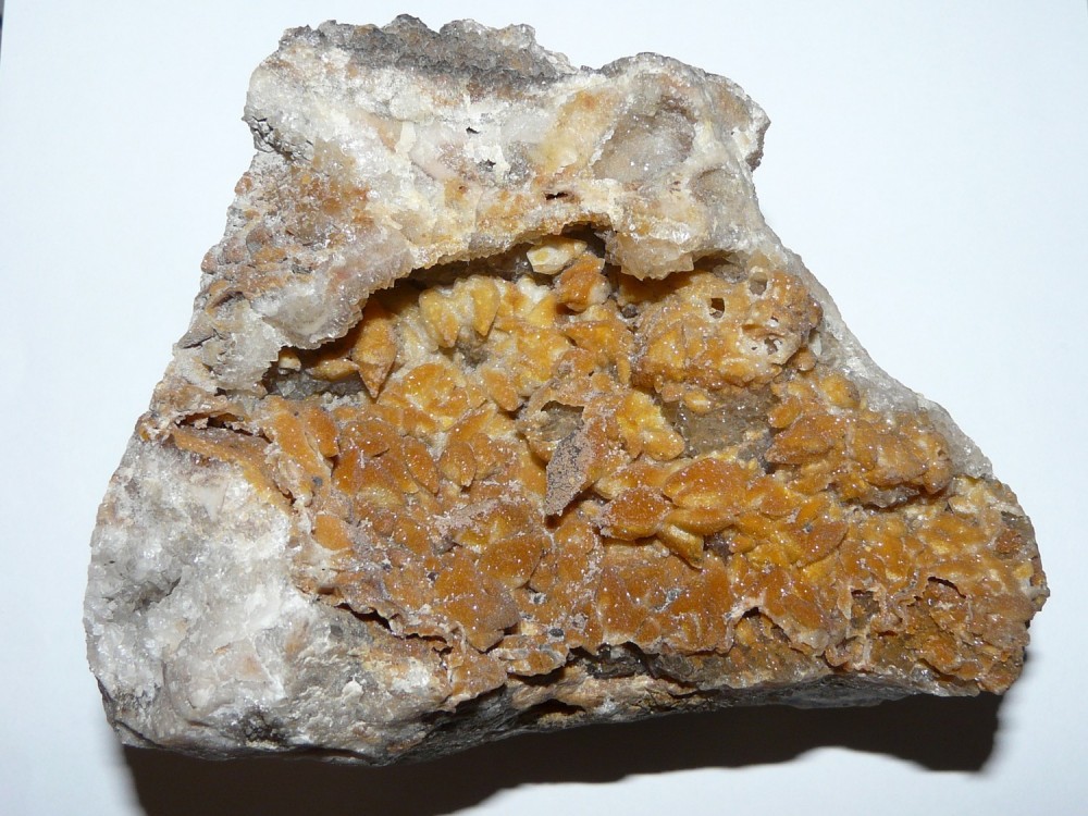 Curieux de voir que le quartz de la matrice est propre, alors que celui des pseudomorphoses est plein d'oxyde de fer. Comme si la matrice avait été protégée...