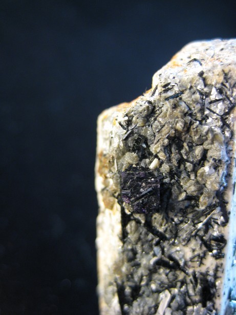 Aigue marine et schorl, Erongo massif, Namibie.  7,5 x5 cm.
