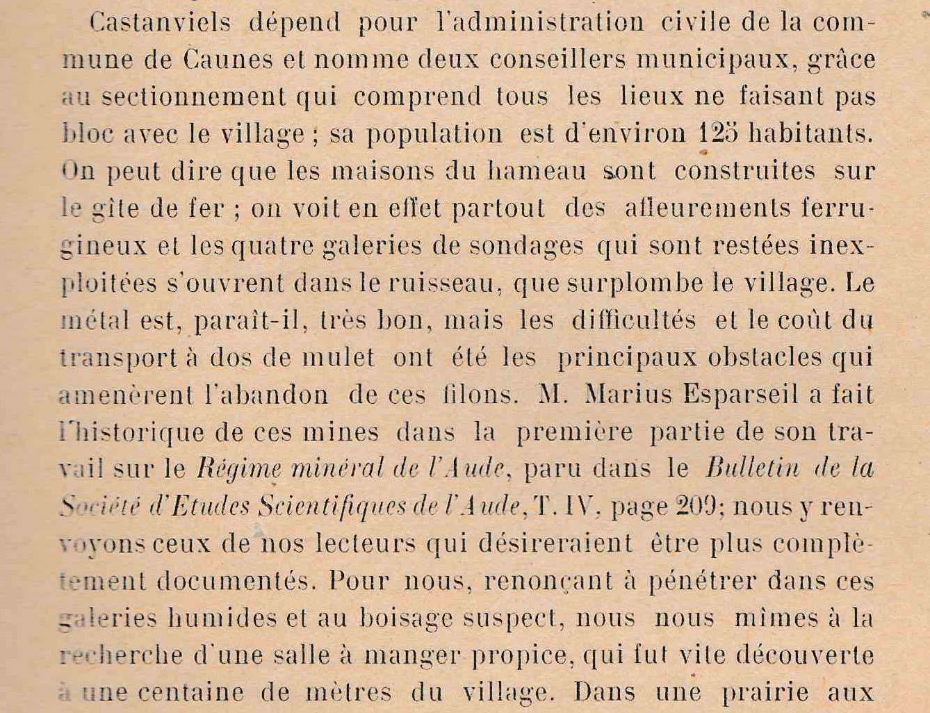 Mine de fer en Minervois. Sauf erreur de ma part, le Minervois est en terrain calcaire ou grès rose sur les hauteurs.