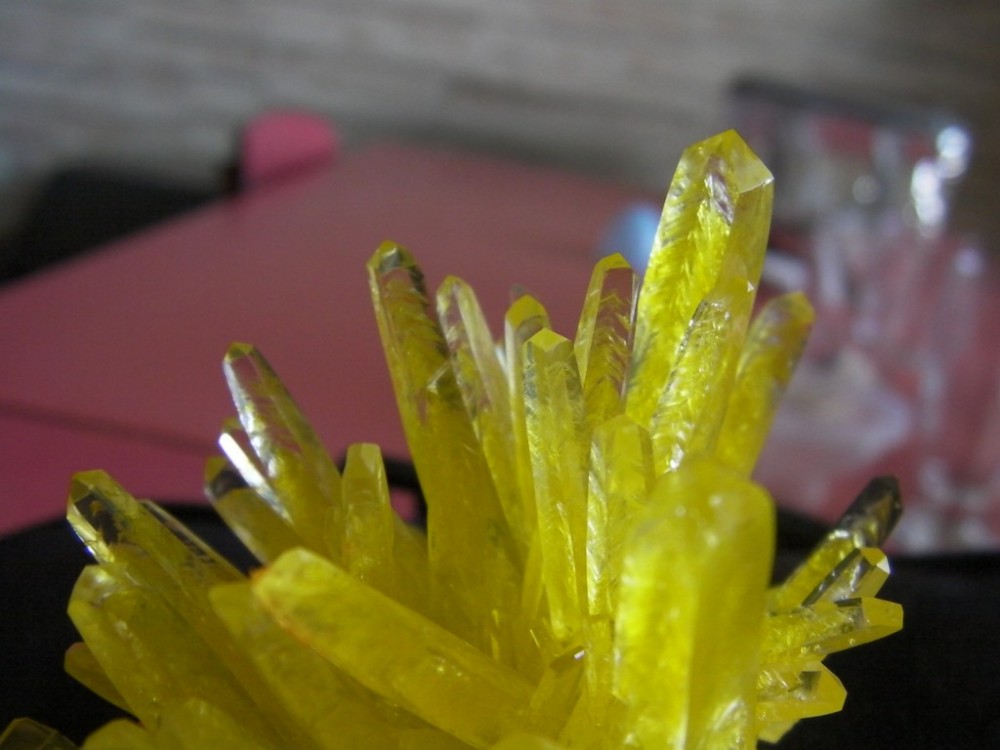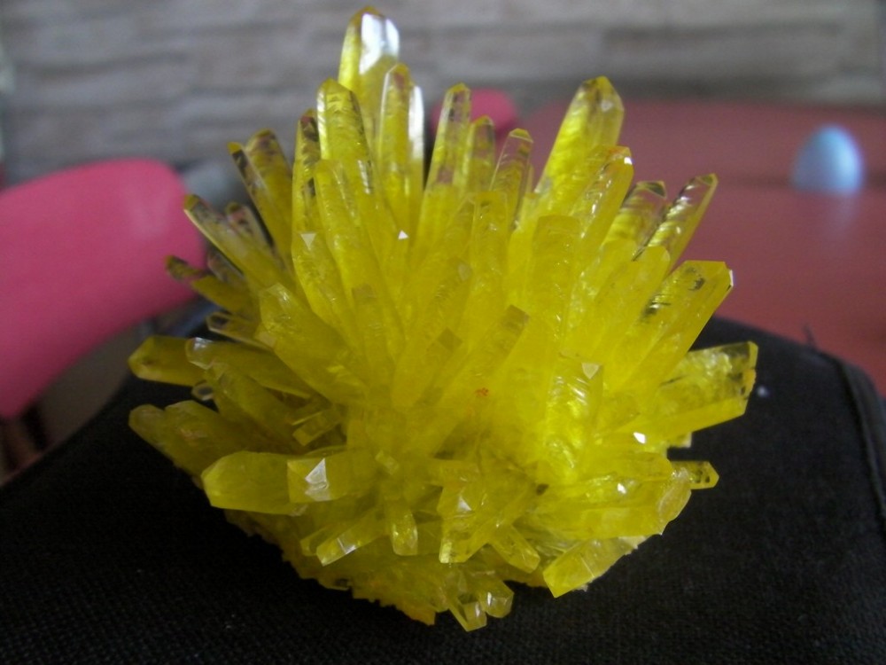 Bref, peinture voilette avec petite paillettes effet "or", l’intérieure de la géode fouette à mort et l'extérieure sent le bitume!