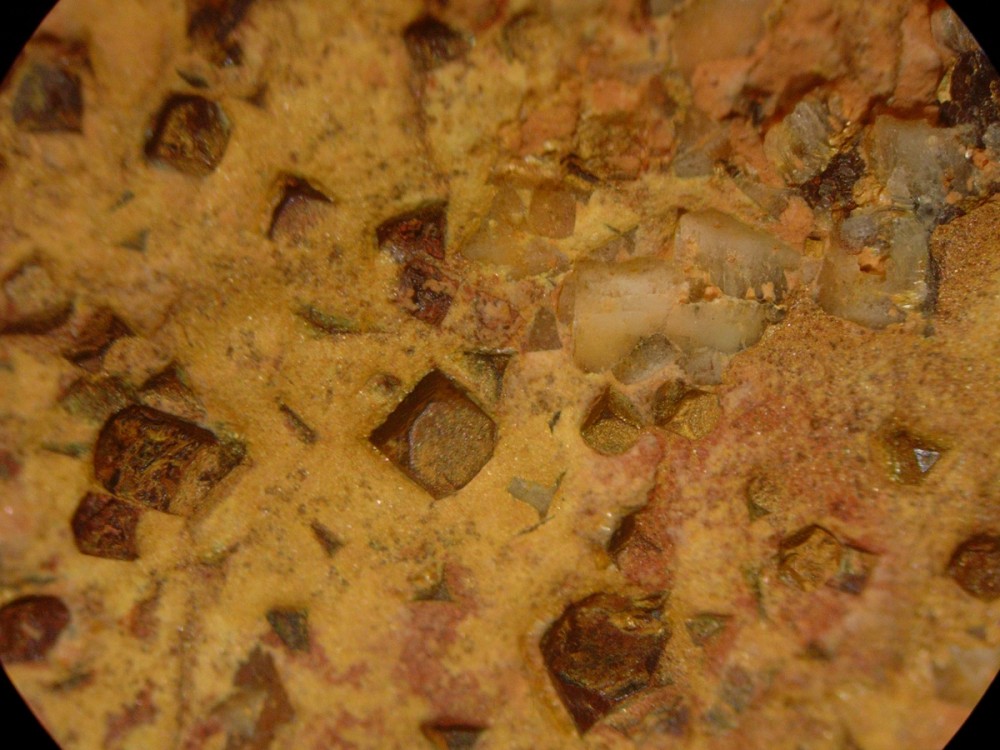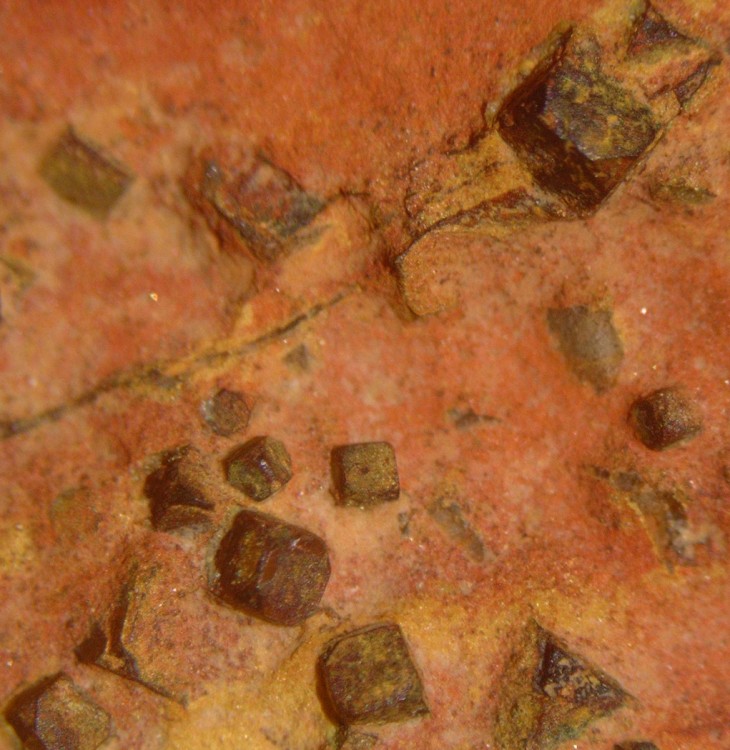 Je pense que pour la plupart des cristaux que je vais montrer la pyrite a été remplacée par d'autres composés de fer en raison de l'altération de la totalité du sédiment par le climat équatorial.