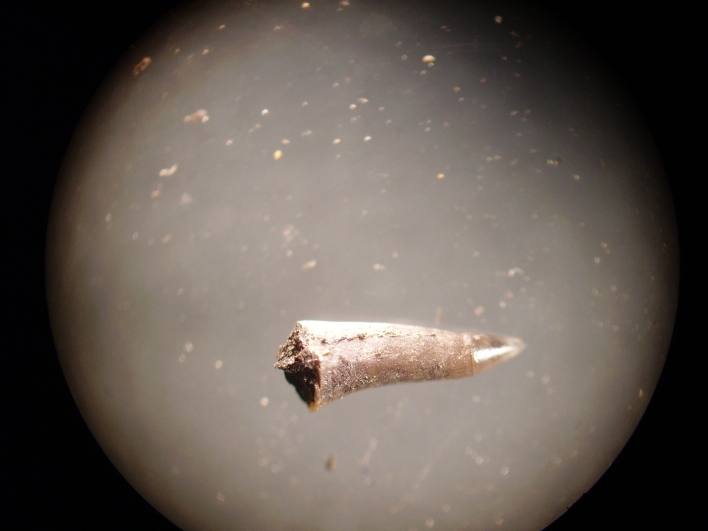 post-3189-1260218817_thumb.jpget enfin , une dent : seulement quelques unes trouvées sur un site unique, leur taille varie de 3 à 7ou 8 mm; si un géoforumeur a une idée concernant l'identification de leur ancien propriétaire, je serais ravi d'avoir une info à ce sujet...(on n'a pas retrouvé dans le sédiment la carte de visite du dentiste) . merci et