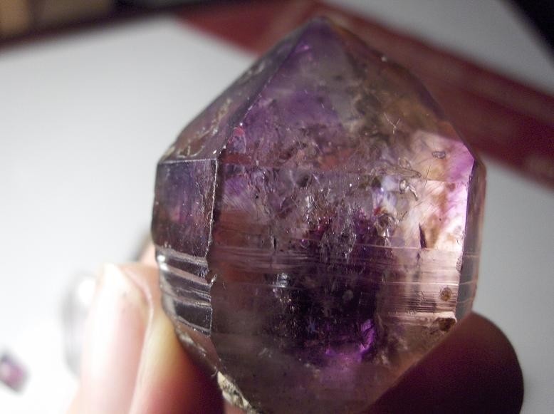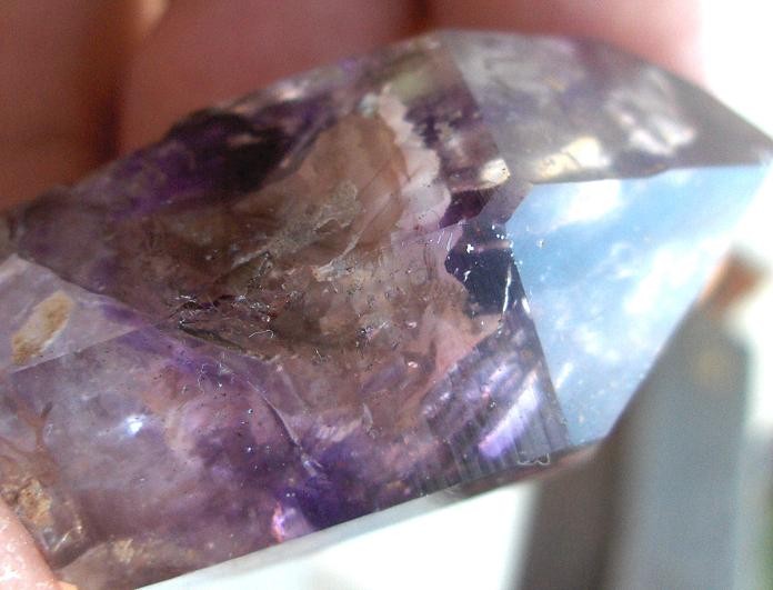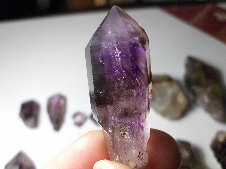 En rentrant à la maison, je découvre qu’un de mes sceptre d’améthyste contient en plus une bulle d’air, bien visible, qui se promène sur 6 bon mm. :ye!: :super::sourire: