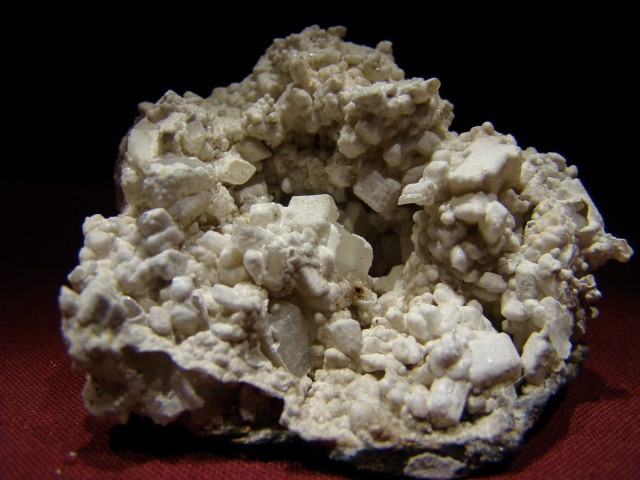 trois pièces de calcites recouvertes d'un enduit blanc, celles ci datent d'aout dernier. Hydrozincite, Strontianite, Aragonite ?