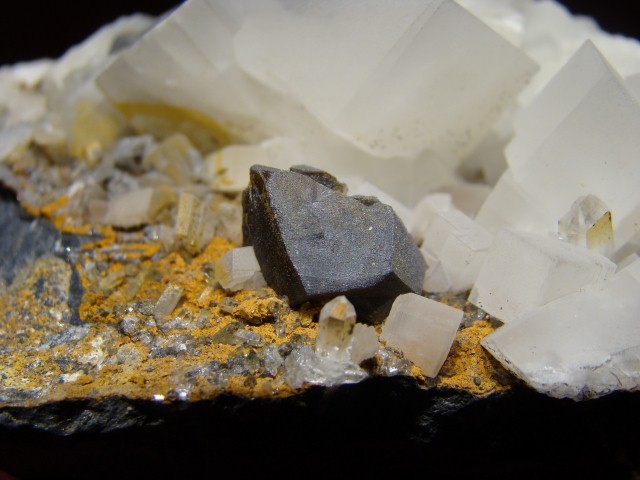 Sphalérite, Quartz et Calcite sur gangue. 7cm