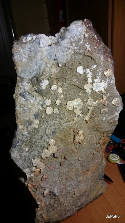 Dos de la pièce présentant des petits choux-fleurs de Barytine opaque, j'ai trouvé d'autres occurrences pour ce type sans retomber sur la qualité de l'endroit :