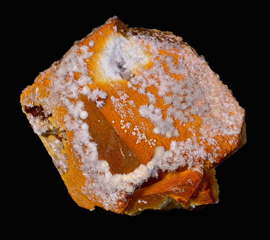 Une fois qu'il n'y avais plus d'ankérite, de l'aragonite s'est de nouveau déposée en fin cristaux blancs.
