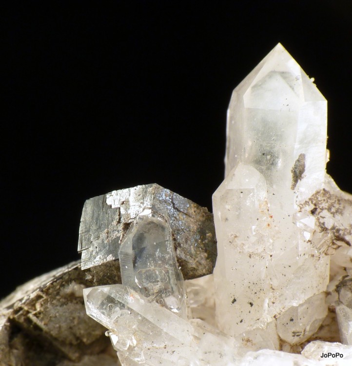 Pour info, on trouve également des quartz avec fantômes blancs aux deux Alpes dans un contexte géologique où je ne suis pas certain que la présence de cookéite soit avérée. Pour les expliquer j'imaginais plutôt des épisodes de cristallisation de quartz laiteux suivis de phases où la cristallisation produisait un quartz plus limpide.