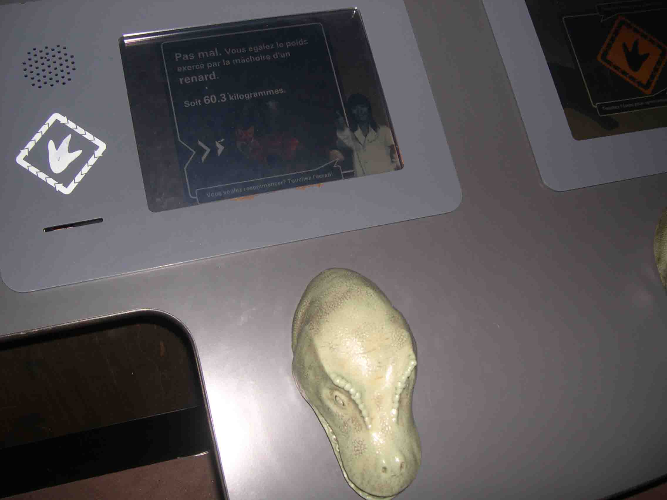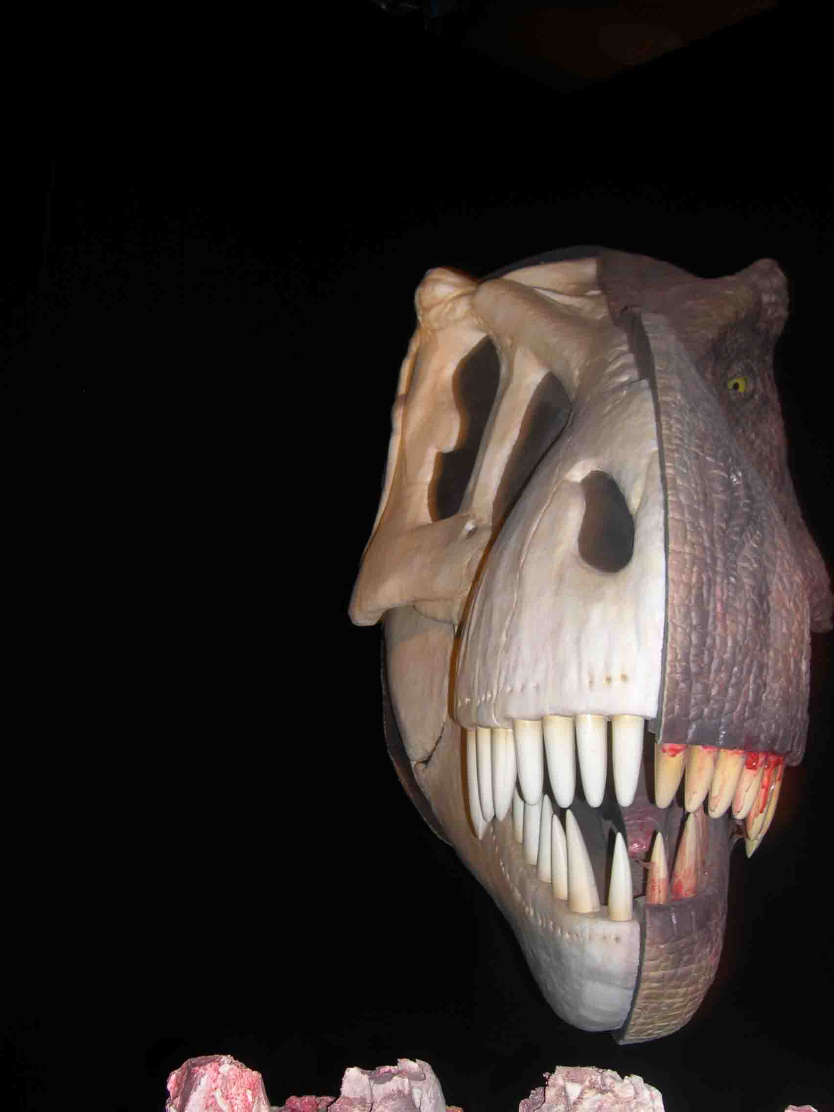 en appuyant sur la tête du T Rex le visiteur peut éprouver sa force, qui en appuyant fort, oscille entre celle d'un rat et d'un renard, loin, très loin de celle de la morsure présumée du T Rex
