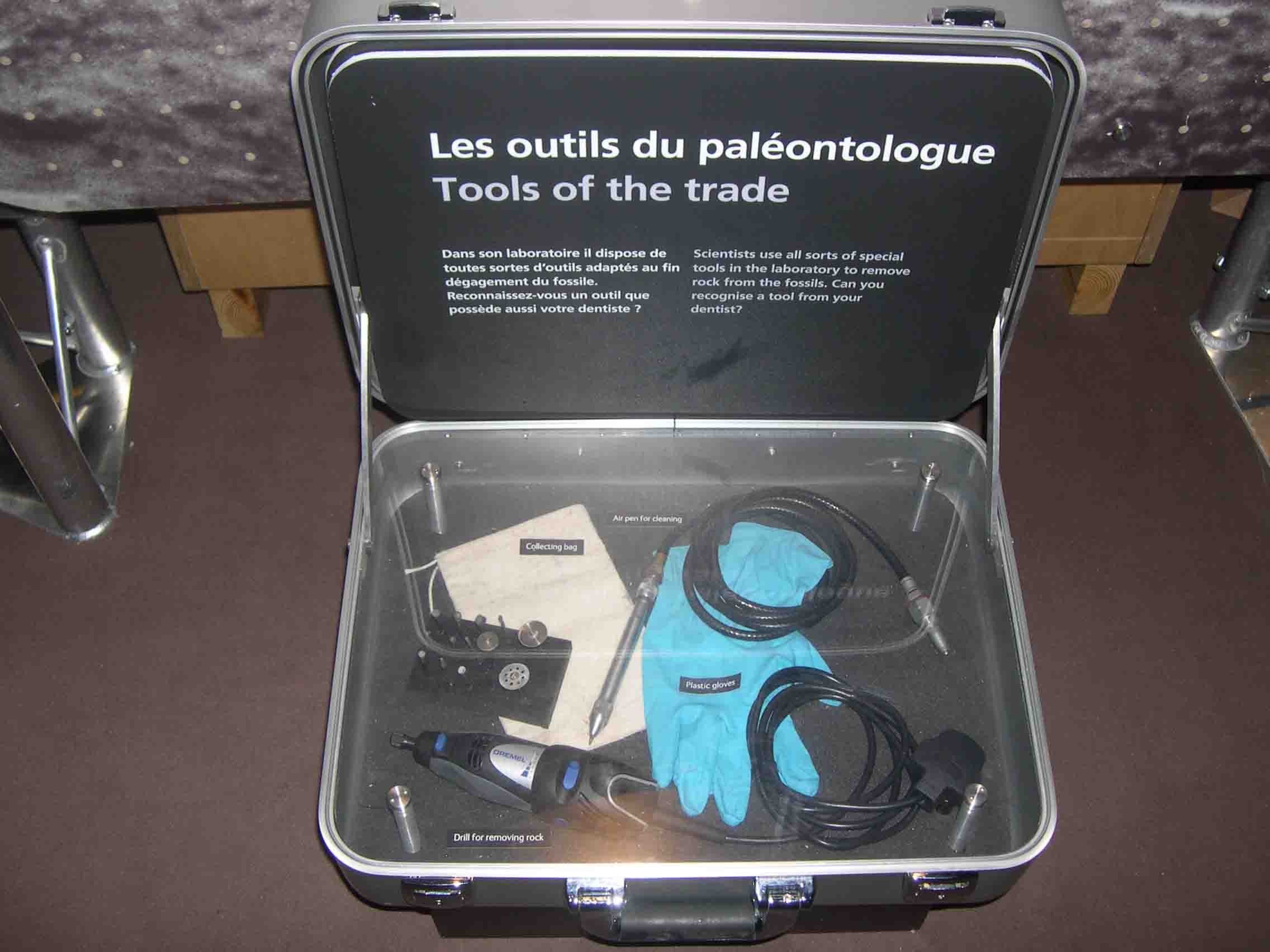 En effleurant la table les enfants peuvent débarasser le chantier et révéler des ossements (grosse réussite: pas de risques de se taper sur les doigts, pas de possières, remarquable objet didactique approprié à ce genre d'expo, avec tous mes compliments au concepteur)