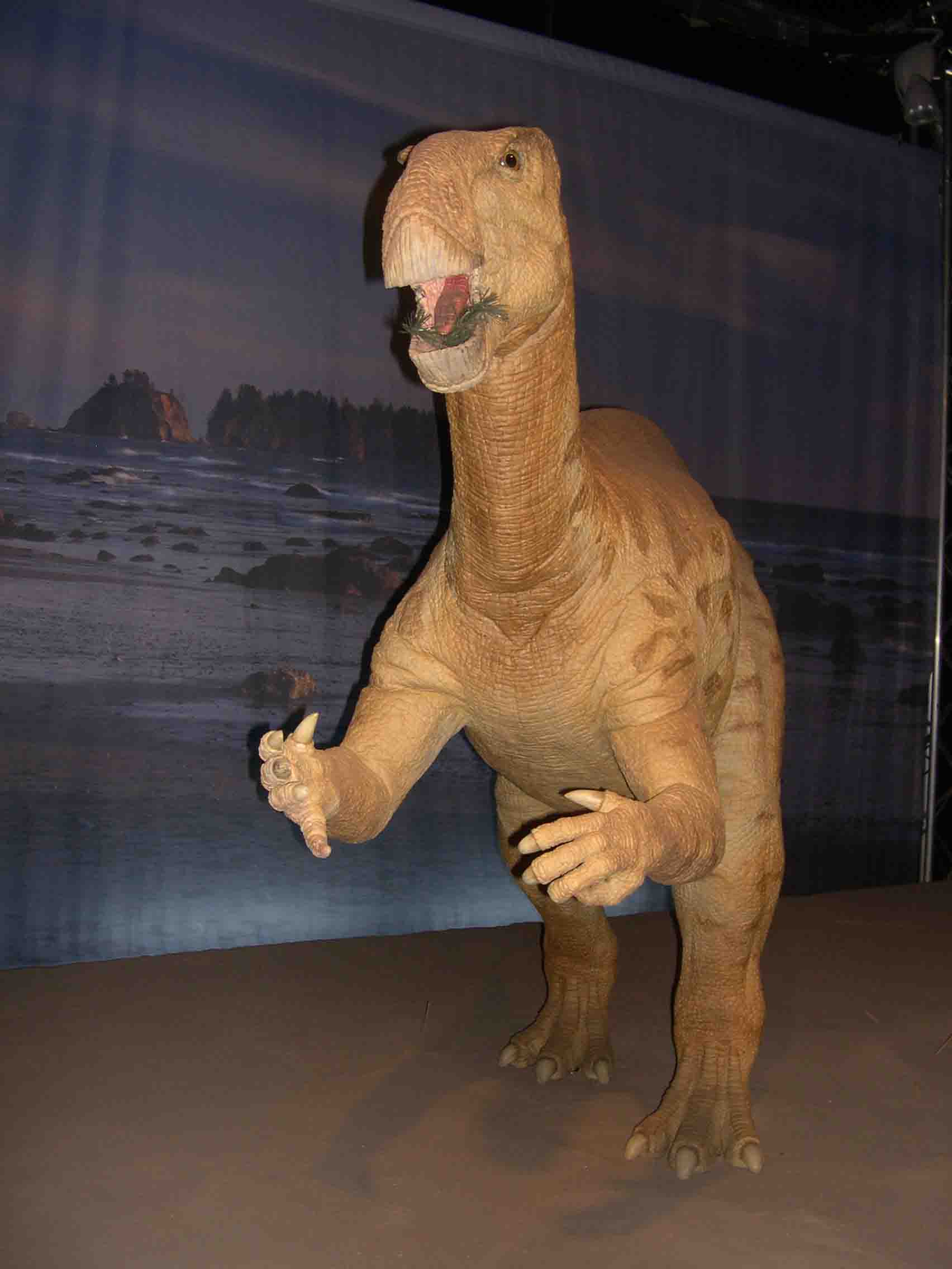 Quand on regarde de près l'iguanodon mâcher, vraiment on s'y croirait (malheureusement , et toujours soucieux du moindre détail, on voit certes bien le rôle des joues maintenant la nourriture à l'intérieur, mais pas ce petit mouvement discret mais efficace des maxillaires supérieurs s'écartant quand les maxilaires inférieurs remlontent. Peut être que cela demande un peu trop à la machinerie ? )