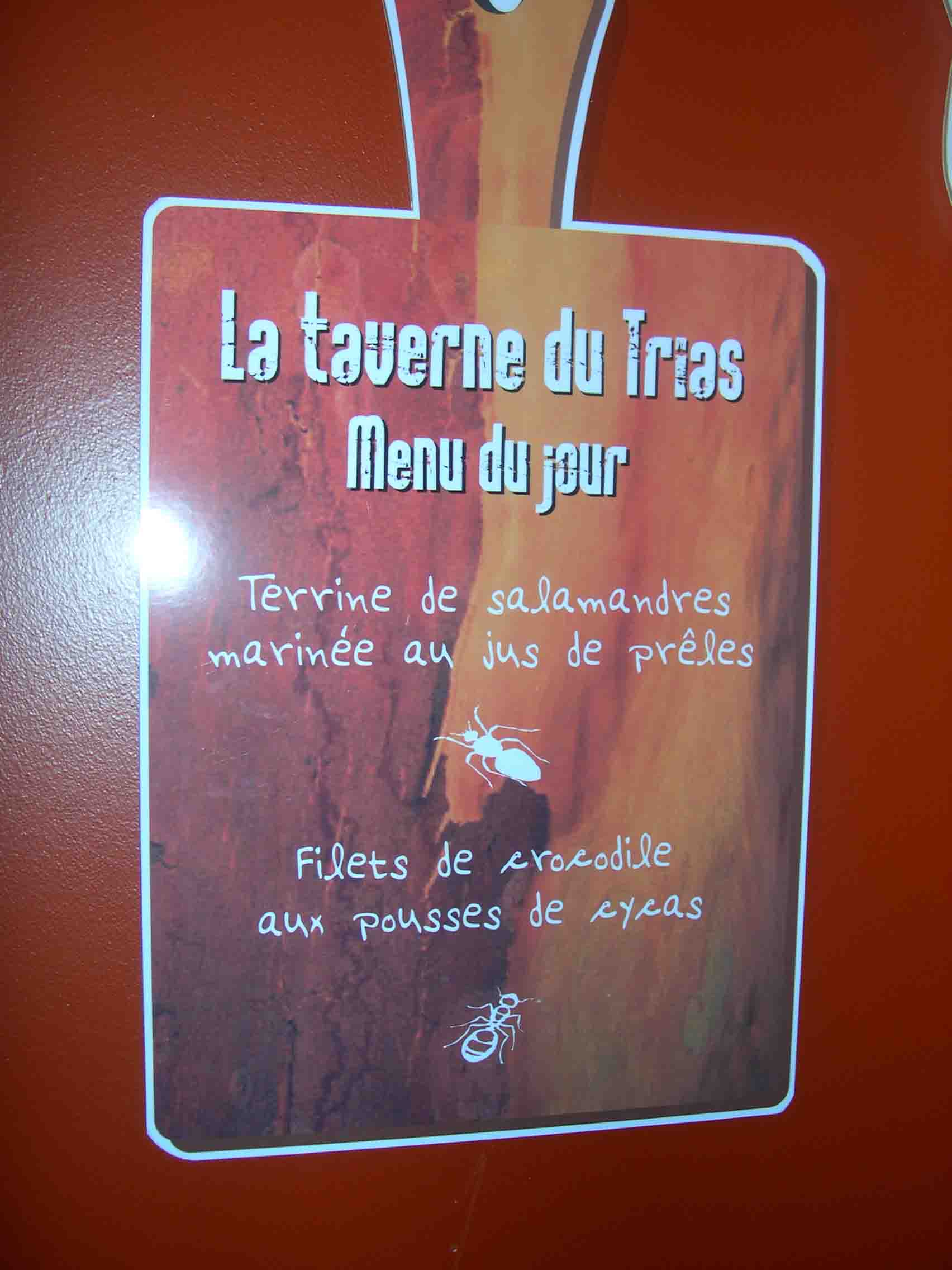 allez encore quatre dernières pour la route et bon appétit, j'ai pourtant bien cherché :super: je n'ai pas trouvé les tavernes annoncées en fin d'expo :super::super::triste: j'aurais pourtant bien voulu goûter au steak d'hadrosaure, ou à la cotelette ou au gigot de protocétatops :super: Si quelqu'un les trouve, :help1: qu'on n'hésite pas à me faire parvenir le plan d'accès, merci :super: Attention: pour les garnitures végétales ... population à dentier s'abstenir! Un peu coriaces les benettitales, prêles, fougères et cycas :super: