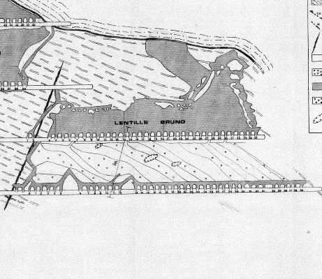 Par rapport au zéro local de la mine (Z NGF +82m) qui était le traçage le plus bas sortant au jour (juste au-milieu de la figure du haut; j'ai coupé la sortie au jour), les geodes ont été surtout développées dans la lentille Bruno, entre le -90 et le -125 (appelé le -35 sur cette frontale de Hugues Falzon 1981) donc noyés les premiers après l'arrêt des pompes