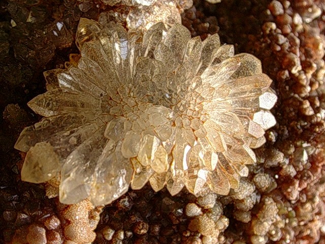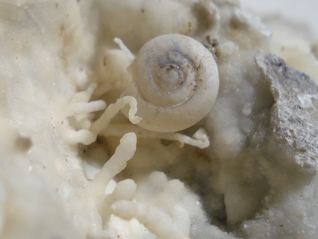 je l'ai déjà mis dans un autre poste mais comme c'est frais d'une semaine et que cela me plait bien voilà... calcite accompagnée d'un camarade gastéropode calcifié...
