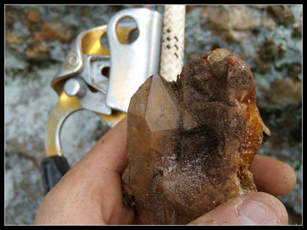 + des cristaux in situ, la plupart sont déja dégagés par l'erosion mais voici comment ils se presentent dans la roche ! B)