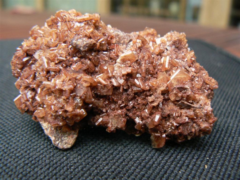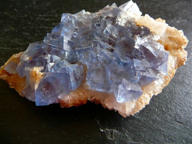 Jusqu'à présent je n'en ai trouvé que 3 petites pièces. Celle-ci fait 7 cm à la base par 5,5, à 6 cm en hauteur. Cristaux entre 1 à 1,5 cm
