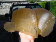 le quartz biterminé est pris dans la glace au fond de la fissure (travail avec une tringle de 1m,l'entrée du four est réduite, voir la photo suivante)