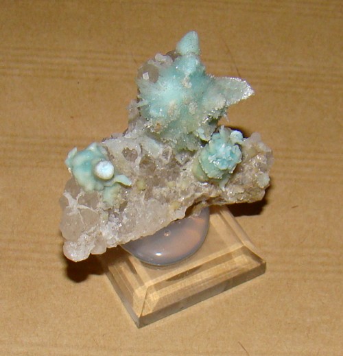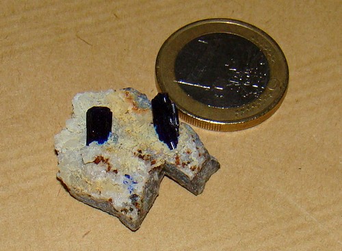 je ne resiste pas au plaisir de vous faire part de cette decouverte d'aragonite bleue sur quartz...