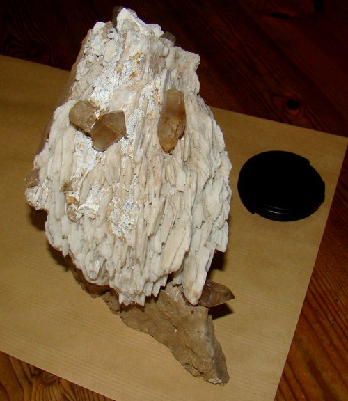 les quartz sont posés sur la barite grace a une recristalisation d'aragonite.traces blanches sur la tof...
