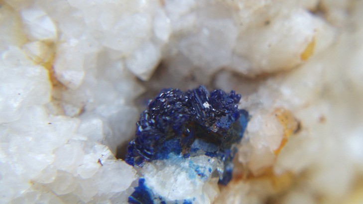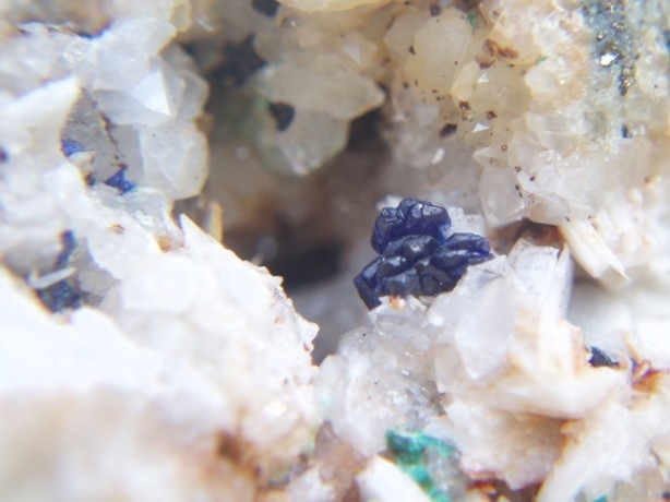 spécialement dédicacée à Hervé (alias le sablais), 2 azurites micros plutôt sympas trouvées mardi avec Fred dans les anciennes carrières de baryte de Camel en Ariège. cristaux 2 mm pour la première, boule cristallisée 4 mm pour la seconde.