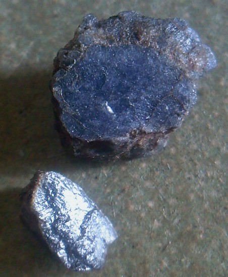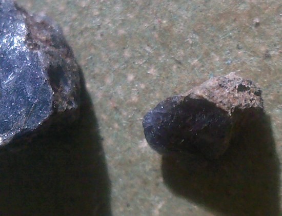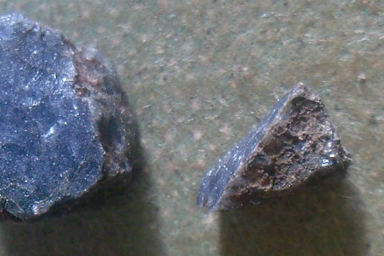 Bon je gratte encore sur mes petites pierres bleues.... apparemment origine basaltique puisque le petit caillou( 6mm) a une croûte de basalte !