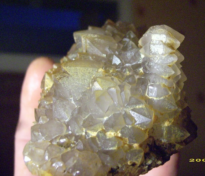 voici des photos d'une sortie fluo en haute loire qui n'a pas donnée grand chose niveau fluo, a part un peu de systématique et une énorme poche de quartz limpide un peu oxidé. ca fais toujour plaisir de foutre les mains dans la glaise.....