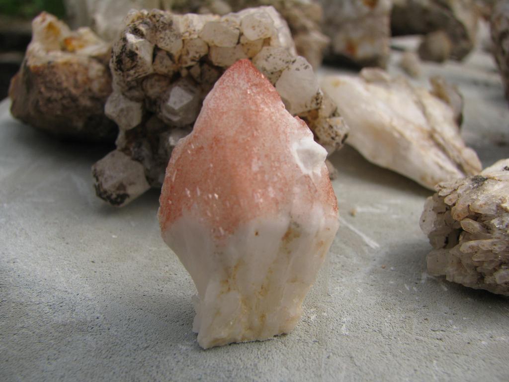 ça faisait un bail! bon et bien voilà des découvertes récentes toujours à Riom.bon j'ai pas fait les tests tout simplement parce que j'ai pommé le vinaigre...je pense à de la chabazite rouge mais j'y crois pas va falloir que je cherche...