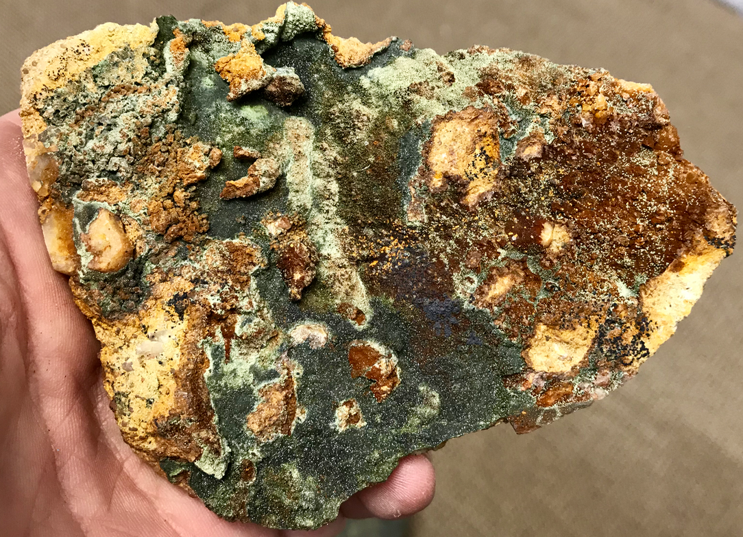 Olivénite, malachite et autres minéraux, mine de cap Garrone, Le Pradet, Var.