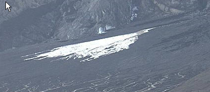 Ca fait bien étalement d'avalanche... style chute de séracs.... et comme il y a les deux canyons, dont on ne voit pas le fond, pour canaliser ces chutes au dessus ca me parrait plausible...