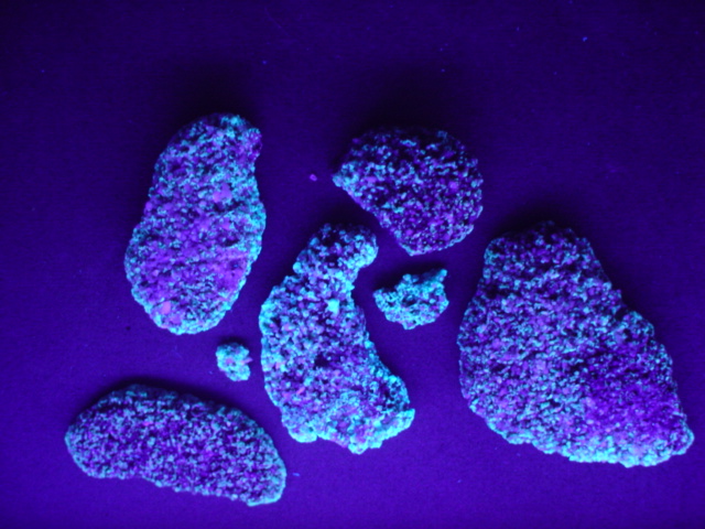 _ réaction aux UVL ? pourquoi ces grains verts sont ils fluos ? dureté entre ongle/cuivre ?