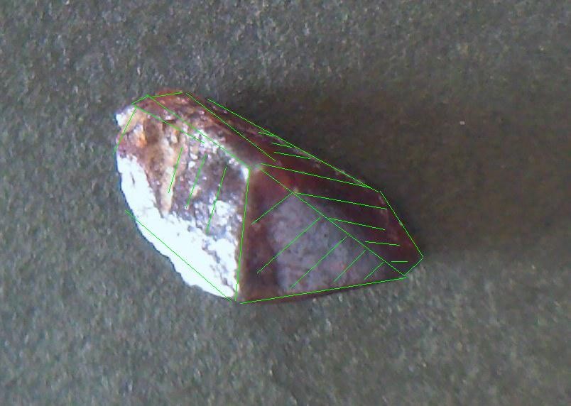 ah oui et cette tache blanche qu'on voit sur la grande face qui pointe vers l'avant sur la photo ou tu as surligné les angles en vert, est-ce que c'est un effet du a la photo? Ou bien s'agit-il réellement d'une tache a l'aspect nuage blanchatre floconeux?