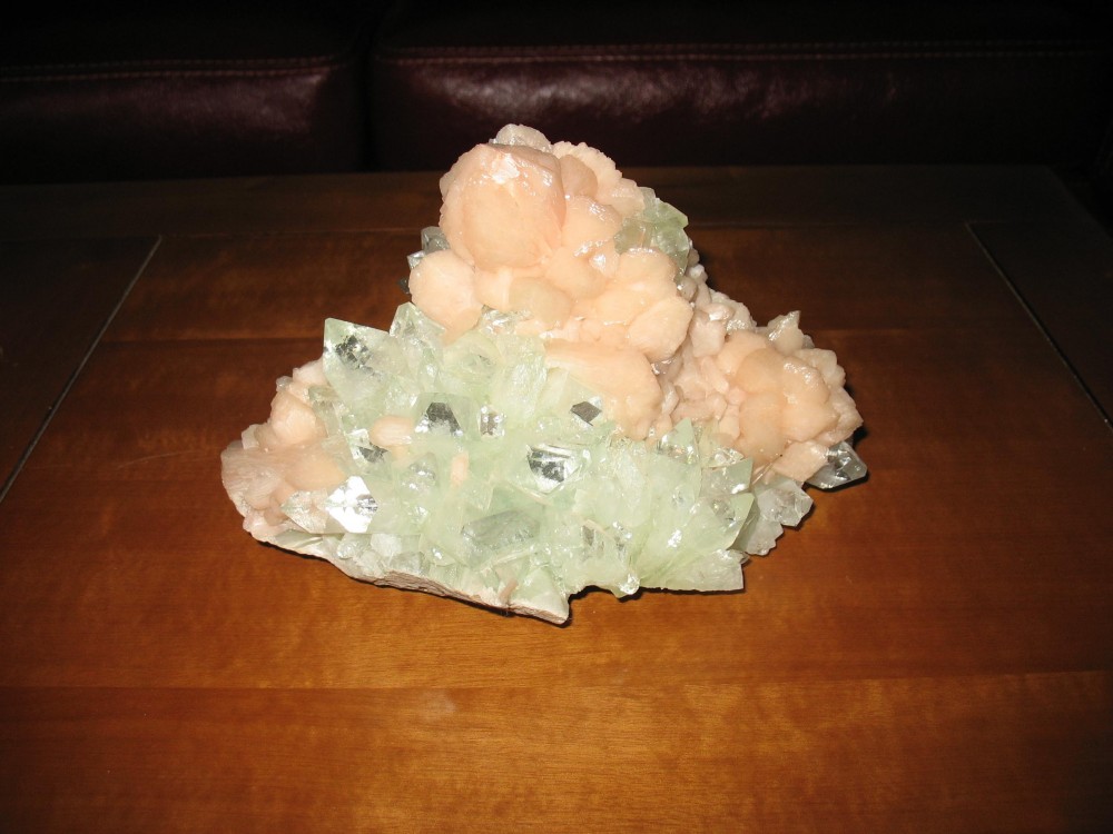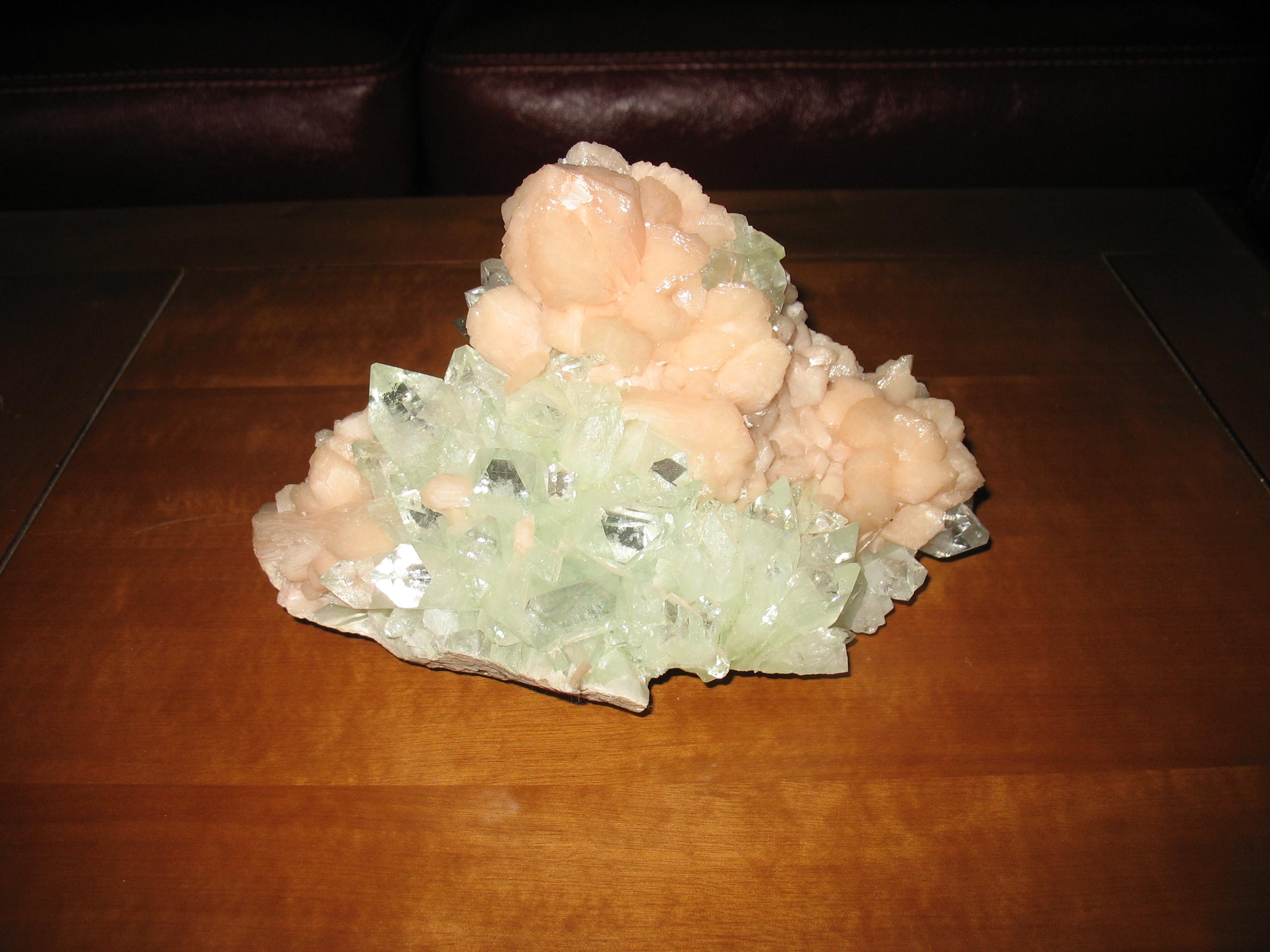 Apophyllite (verte) et stilbite (rose) d'Inde