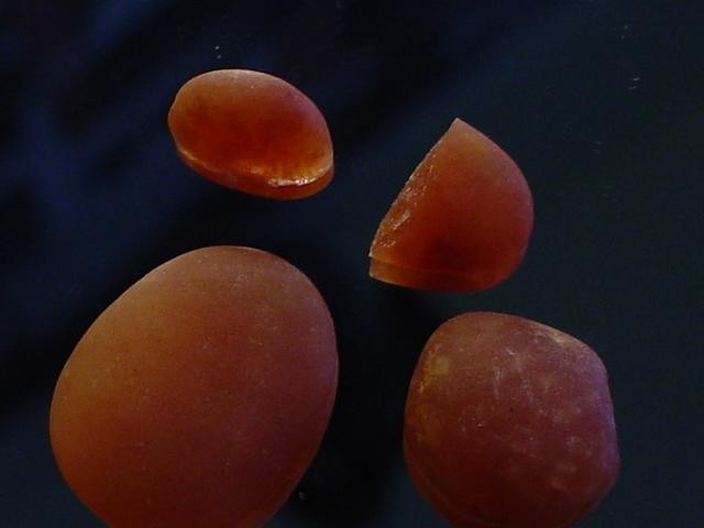 Pour les pierres oranges, pas d'adularescence, quelques inclusions micas, paillettes brillantes (obs.bino).