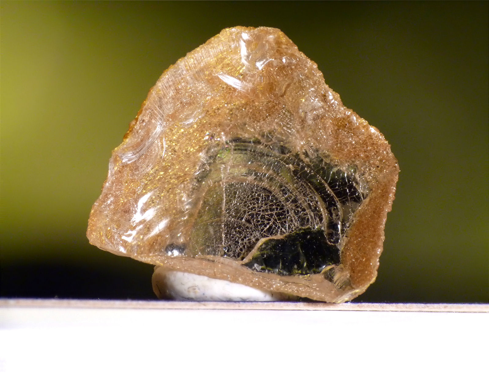 Si tu as bien observé ces photos, tu pourras remarquer que sur le conchoïde( non provoqué par la chute malencontreuse) il y a encore cette maille.