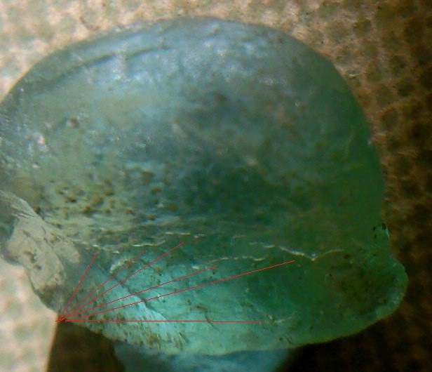 Tu peux remarquer également que sur le conchoïde, on a cette sorte de superposition( flèches rouges) . Etonnant du verre qui a cette caractéristique !!