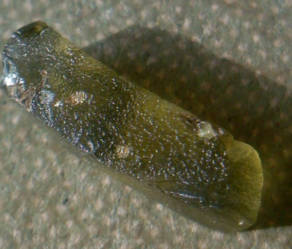 Ensuite la "verte" : je ne sais pas pourquoi elle a cette forme, ce que je sais par contre c'est qu'elle aussi est composée d'écailles qui ont les mêmes caractéristiques, les mêmes petits " globules" en surface. Sur des angles de lumière, on a encore cette "irisation".