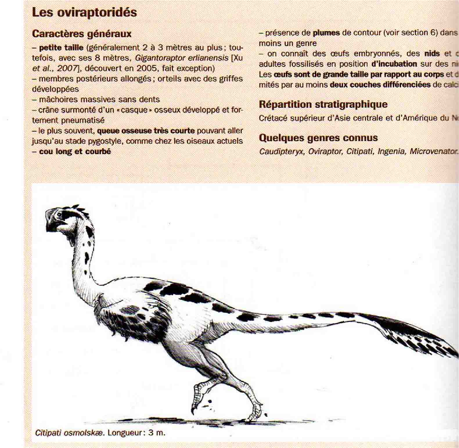 Et à propos de l'illustration de Lecointre, mal choisie, il s'agit de Citipati , pas de Caudipteryx, pour être très précis; je crois que l'image implique que la queue très courte ne saute pas aux yeux, n'est-ce pas ?