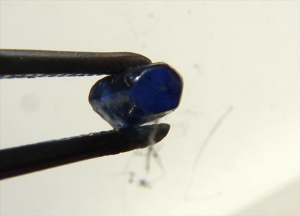 Alain , tu tiens là un saphir qui vaut la peine d'être taillé ! Il sera très sombre, d'un beau bleu. Lorsqu'ils ont ces patines, et qu'ils ont une forme pseudo-globuleuse, leur coeur est extrèmement gemme.