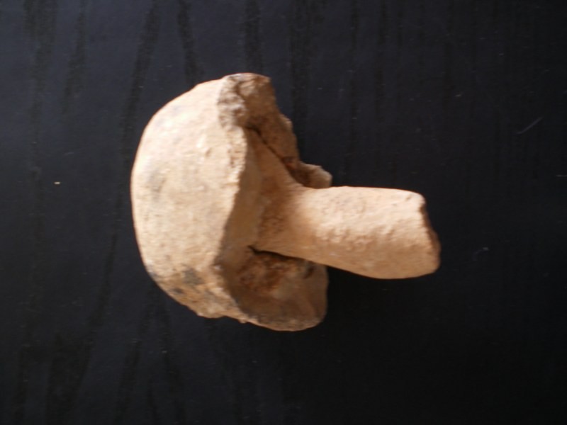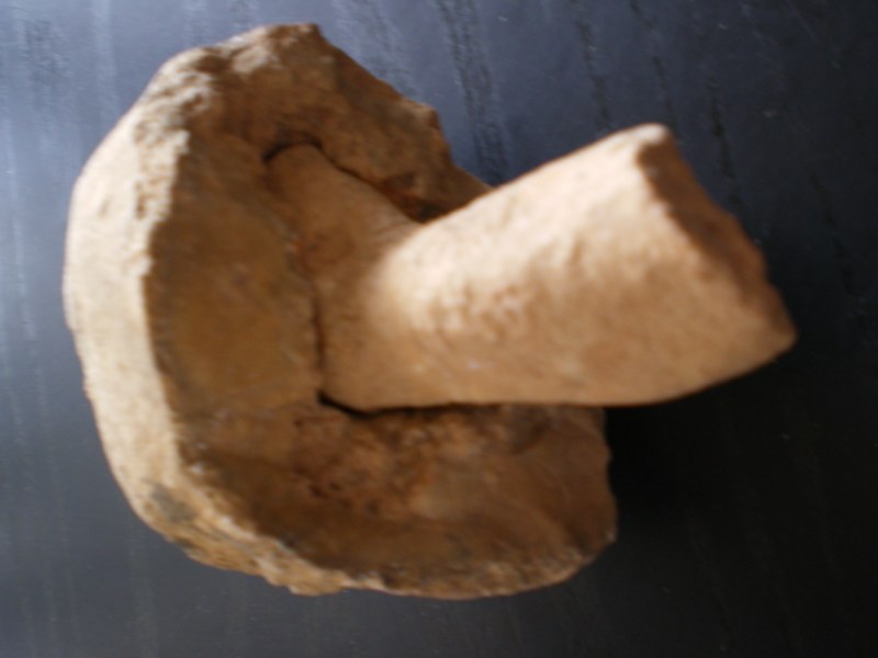 Cette roche fait environ 10 cm de longueur et la queue du champignon (champignon ou non je vais dire cela quand même) est imbriquée dans le chapeau (on ne peut pas la retirer) mais elle est "mobile" (comme une articulation!).