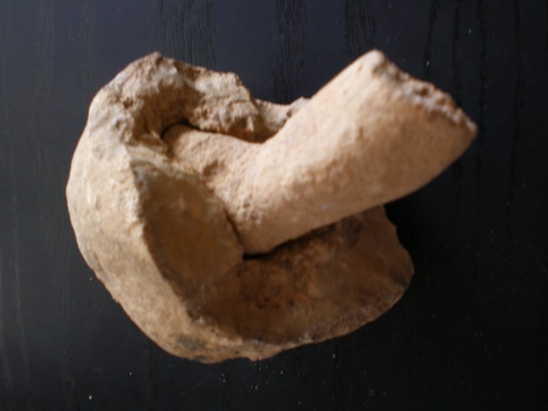 Si si , fossile , et aussi caprice de dame nature . A l'origine , nodule contenant un fossile de spongiaire ; le nodule a été cassé et le spongiaire est resté en partie coincé dans ce qui reste du nodule. Amusant et à conserver tel quel .