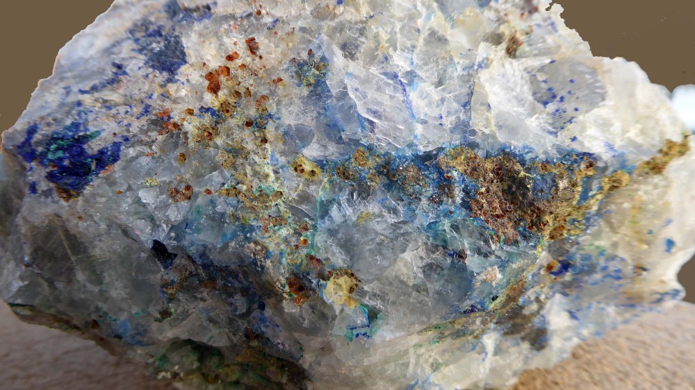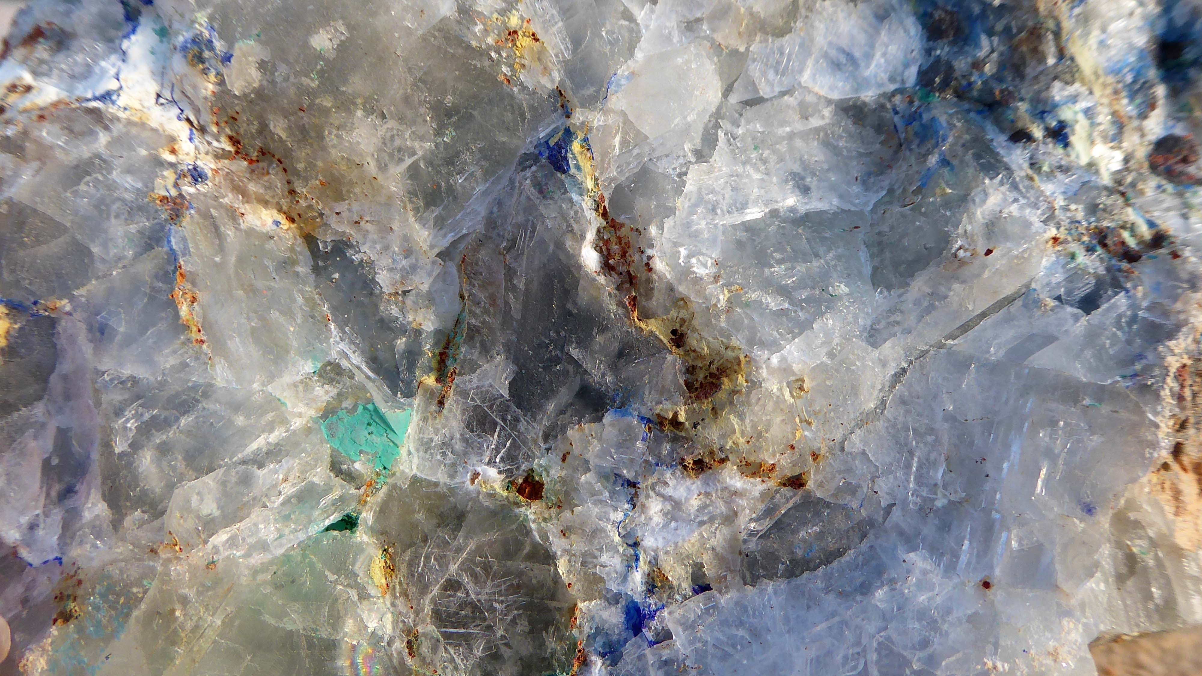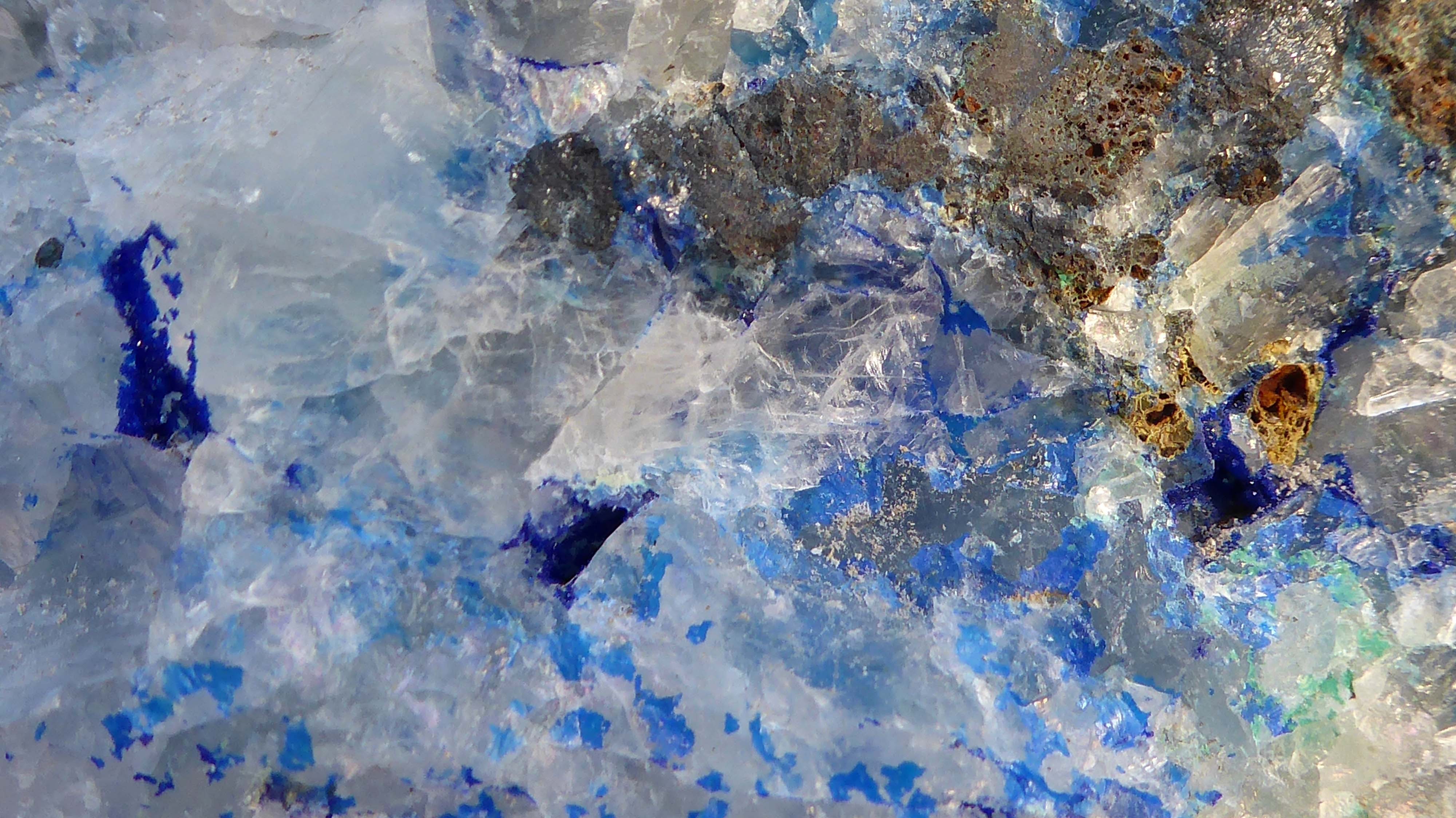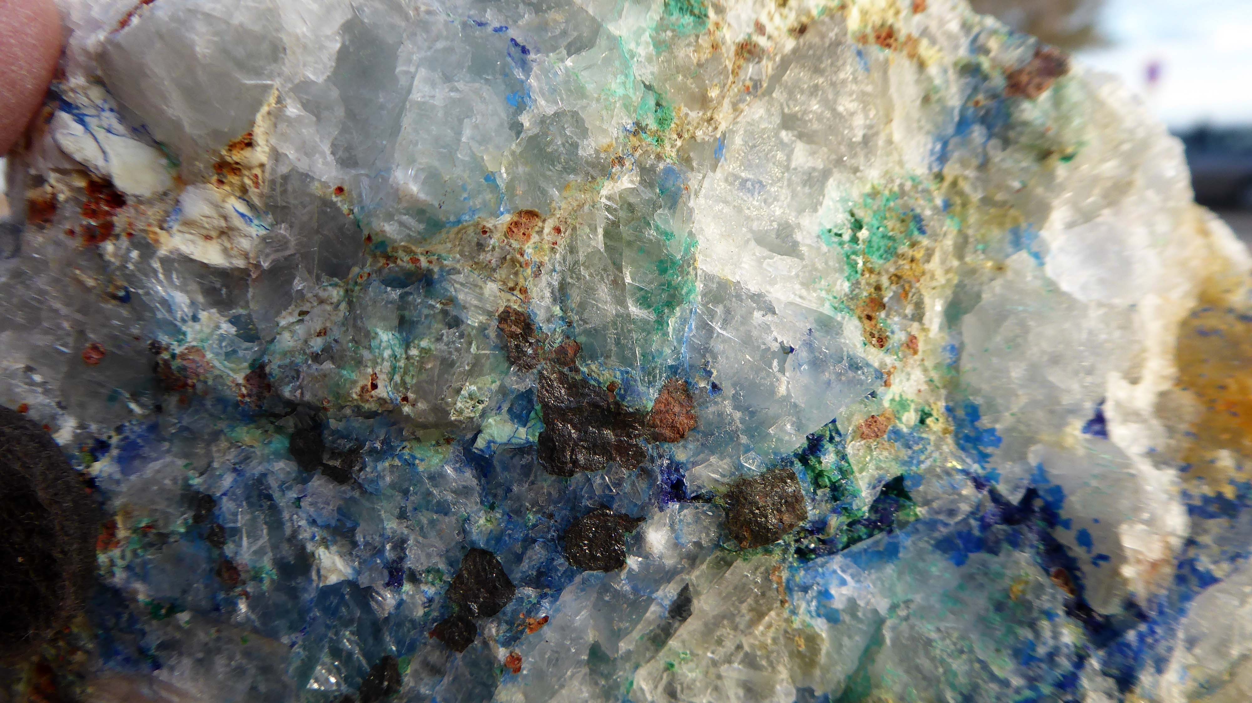 De la chalco, du quartz, et un minéral du cuivre (azurite/linarite?)