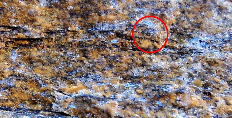 Reprise d'un détail de l'échantillon, avec une petite curiosité dans le cercle rouge.