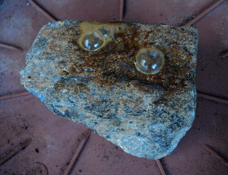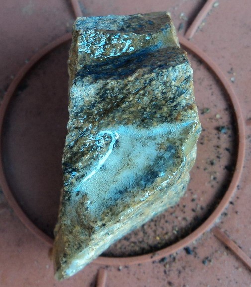 Oui, Alain, comme Papy l'a dit, soit sûr de faire les tests sur une partie vraiment "neuve" de tes morceaux cassés avec, si tu peux, une petite goutte d'acide sur les surfaces choisies : brunes, blanches (ronds de la photo) etc... en notant la différence de comportement pour chacune des parties. Sur ta photo, la mousse est plus "parlante" que sur tes premiers tests (là, ça fait bien effervescence, c'est indéniable) et effectivement, ça complexifie l'affaire.