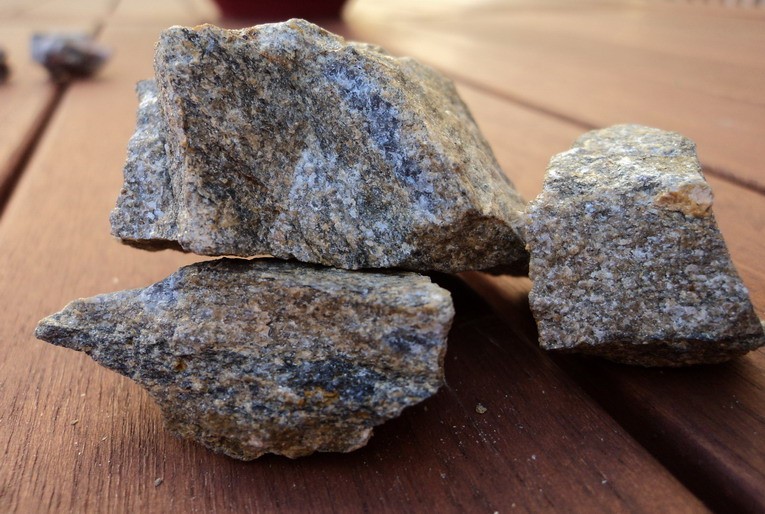 Roche litée, donc pas granite mais plutôt gneiss...mais pas convaincu... Les minéraux noirs sont-ils du mica ?