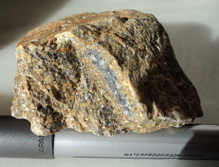 Le stylo en dessous donne une échelle de grandeur de l'échantillon.