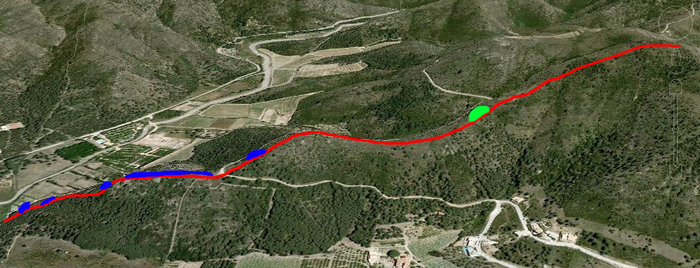 les vallées "jumelles" , la Romanya a gauche (j'ai tiré l'image verticalement pour se rapprocher un peu plus de la réalité /g.earth)), ca donne une idée globale