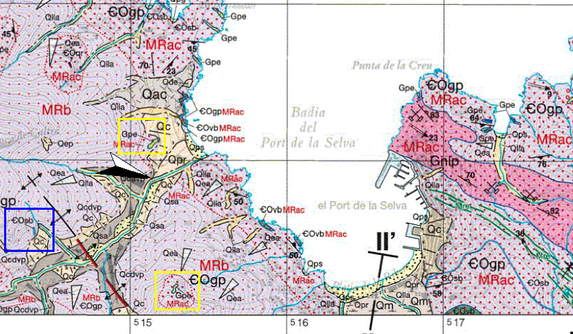 bien bouffée aux mites la pegmatite (voir flèche sur carte). Tu connais celles situées plus a l'Est du Golfe ? et encadrés jaunes ?