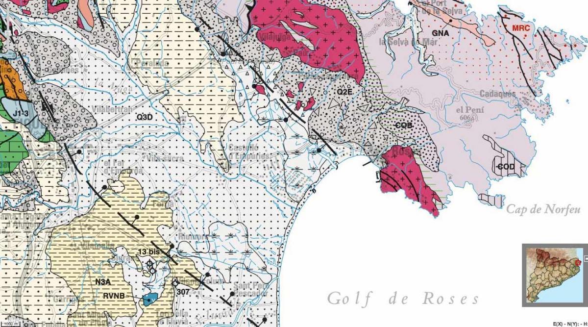 Côté espagnol, ont retrouve les mêmes formations marines Pliocènes, du côté de Rosas qui, elles, montent péniblement à 90 m. (voir carte géol Rosas jointe- N3A)